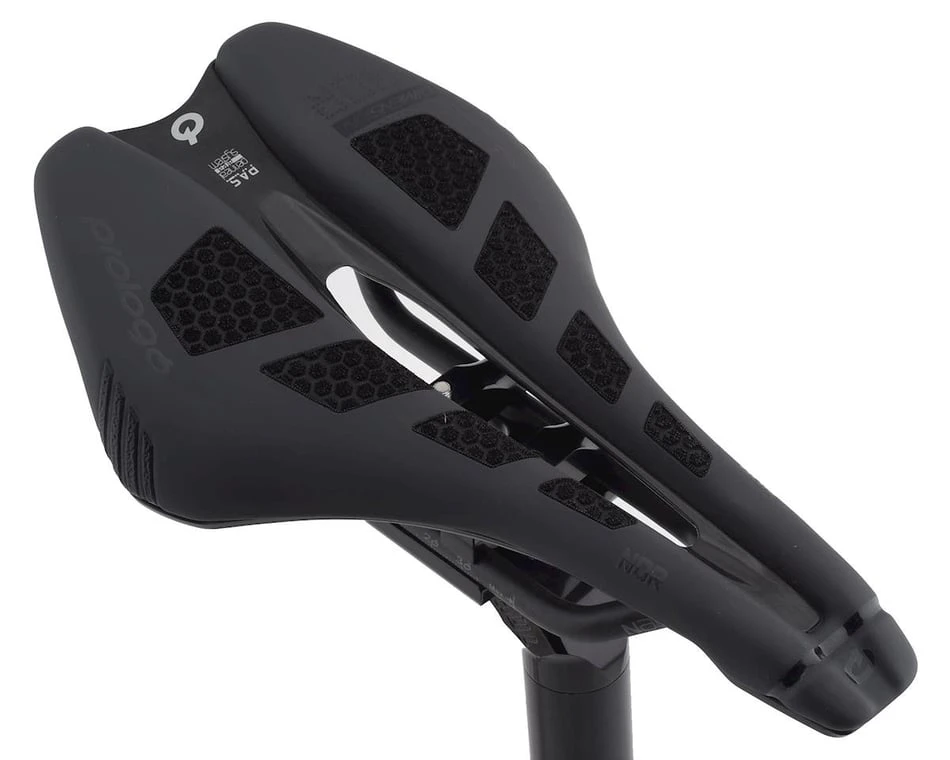 Saddle styles have dramatically changed. Prologo’s Dimension project is no exception to this snub-nose, wide-tailed saddle approach. It is all about comfort, performance, lightness and preventing perineal area problems. The project resulted in a saddle unlike anything Prologo had created. The saddle has a short nose (3+ cm shorter than a traditional saddle) to reduce contact and pressure in the frontal area, especially for low position riding, like riding in the drops. It also features a wide tail for improved stability, weight distribution and power transfer.