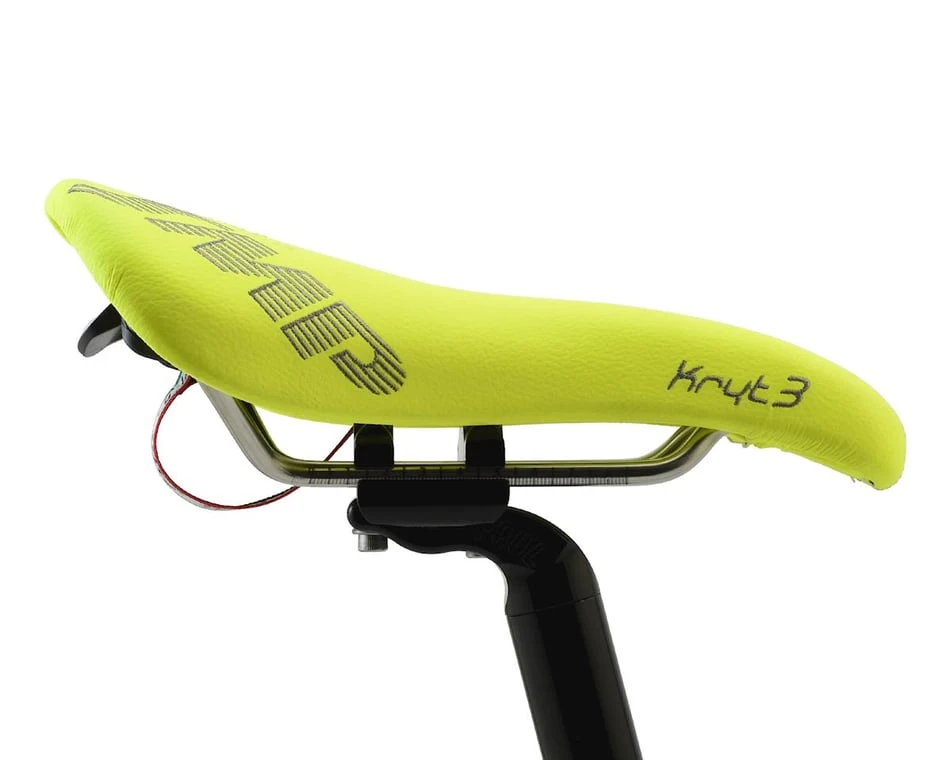 The SMP Kryt 3 saddle was designed for criterium racing. It’s complete nose to tail cut away (Free Central Channel) and the extra padding on the Eagle-Beak Nose creates for a comfortable ride – even when riding “on the rivet.” The SMP Kryt maintains the classic characteristics that SMP is known for, but has a less exaggerated rise at the tail and less dramatic dip at the nose. This allows for more movement across the saddle to get in the ideal position. The Kryt is recommended for a broad range of people with small to large hips.